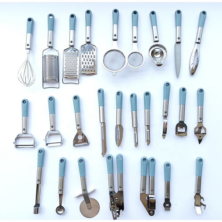 가정용 주방용 플라스틱 손잡이 요리 도구 세트가있는 26pcs 스테인레스 스틸 주방 액세서리