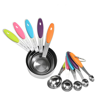 Có thể điều chỉnh 10-mảnh thép không gỉ đo ly và thìa đặt thân thiện với môi cấp thực phẩm với nonslip Silicone xử lý